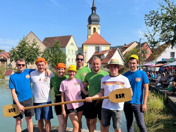Zu einer ungewöhnlichen Teammaßnahme trafen sich Teile des Bezirksvorstandes Unterfranken auf Einladung der Burschenschaft Rödelsee am 1. September 2024. Beim traditionellen Weinfassrennen durch den örtlichen Gemeindesee wurde in Viererteams um Sekunden gepaddelt und ordentlich gejuchzt. Die beiden BJB-Teams waren bei ihrer Premiere gut unterwegs und sorgten für den ein und anderen Lacher bei allen Beteiligten. Und an Land gekommen sind am Ende auch alle … wenn auch nicht ganz trocken!