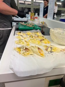 Der Bezirk Mittelfranken führte am 12. März in Ansbach einen Fischkochkurs durch. Eva Hausmann vom Fischhof Hausmann hatte leckere Rezepte für die 18 teilnehmenden Kochbegeisterten vorbereitet. So wurden von der Gruppe zum Beispiel Blätterteigecken mit Kräuterfrischkäse und geräucherter Forelle, Räucherfischcreme vom Karpfen, Lachsforellenfilet im Körnermantel mit Schnittlauchsoße oder Karpfencurry nach Thai-Art zubereitet. Die Stimmung war locker, gelöst und voller Motivation bei den Zubereitungen. Natürlich wurde in geselliger Runde im Anschluss in den Räumen der Landwirtschaftsschule Ansbach geschmaust. Fazit: es hat allen geschmeckt und große Freude bereitet. Danke Eva!