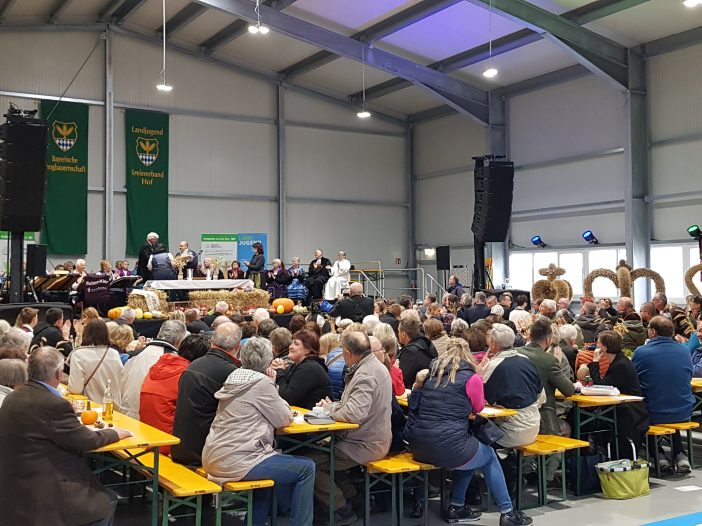 Der ökumenische Gottesdienst zum Kreiserntedankfest wurde durch Gemeindereferentin Mechthild Fröh (Röm.-Kath.Kirche) und Pfarrer Stefan Fischer (Evang.-Luth. Kirche) gestaltet sowie dem Landfrauenchor und Saitenklar musikalisch gerahmt. Der Auftritt des Chores wurde auch genutzt, um dem Chorleiter, Helmut Lottes, für seine 30-jährige Chorleitung zu danken. Botschaft des Gottesdienstes war es, weg von der nörgelnden Gesellschaft zu kommen, hin zum Danke sagen für so viel Gutes, das wir haben.